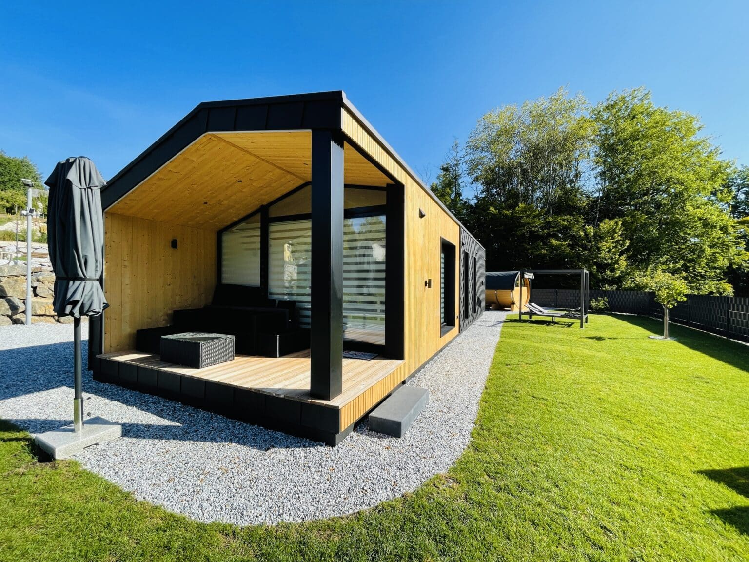 Das Ganzjahresmobilheim JB Black Stone XL ist die perfekte Wahl für Liebhaber offener Räume.
