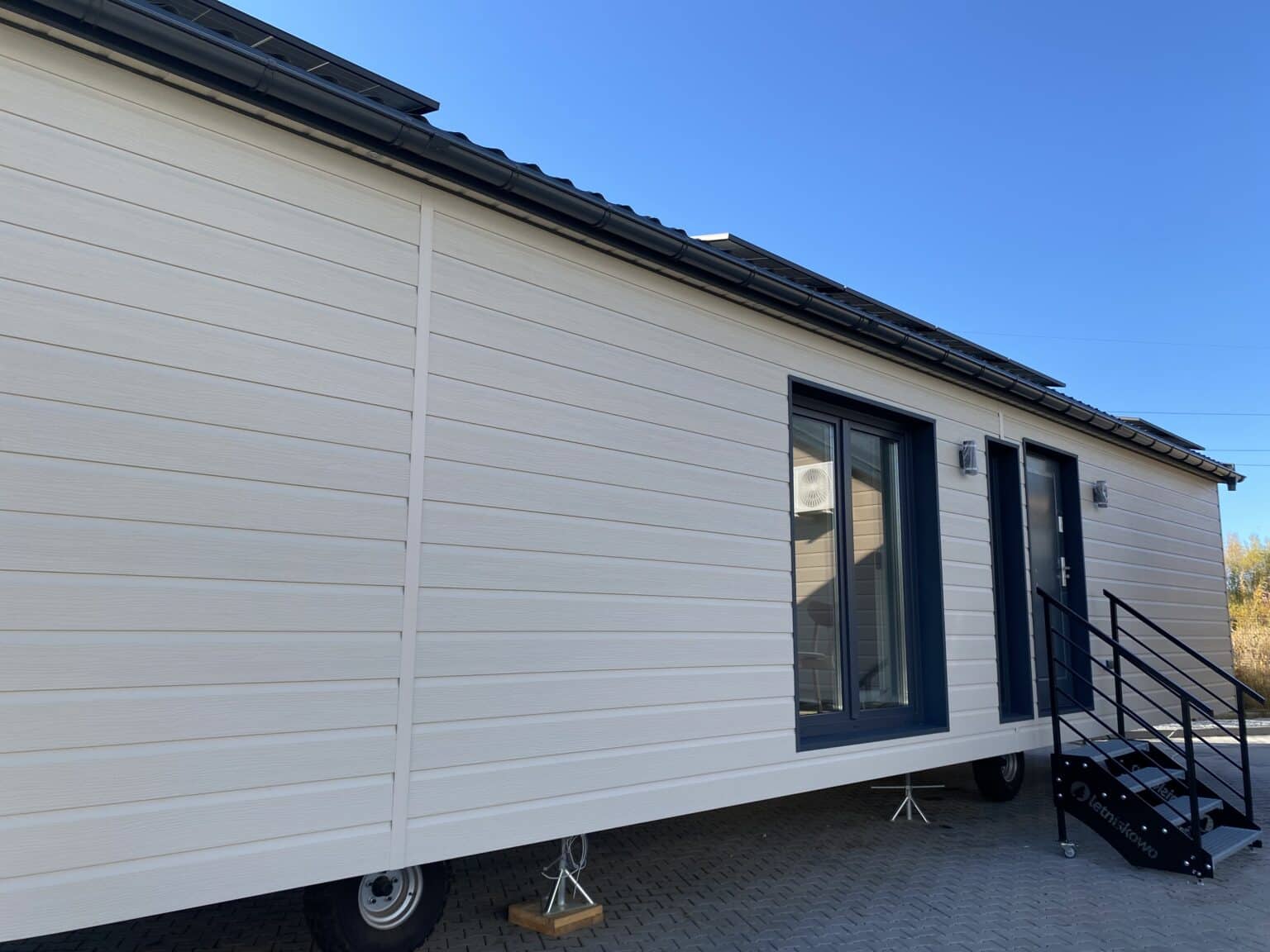 Domek całoroczny EcoSylt z wbudowaną pompą ciepła został zaprojektowany z zamiarem zapewnienia zakwaterowania dla liczniejszej grupy osób, oferując przy tym wszystkie niezbędne elementy do natychmiastowego zamieszkania. Ten model dysponuje 60,28 m2 powierzchni użytkowej i składa się z jednej dużej oraz dwóch mniejszych sypialni, w pełni wyposażonej łazienki oraz obszernego salonu z aneksem kuchennym.