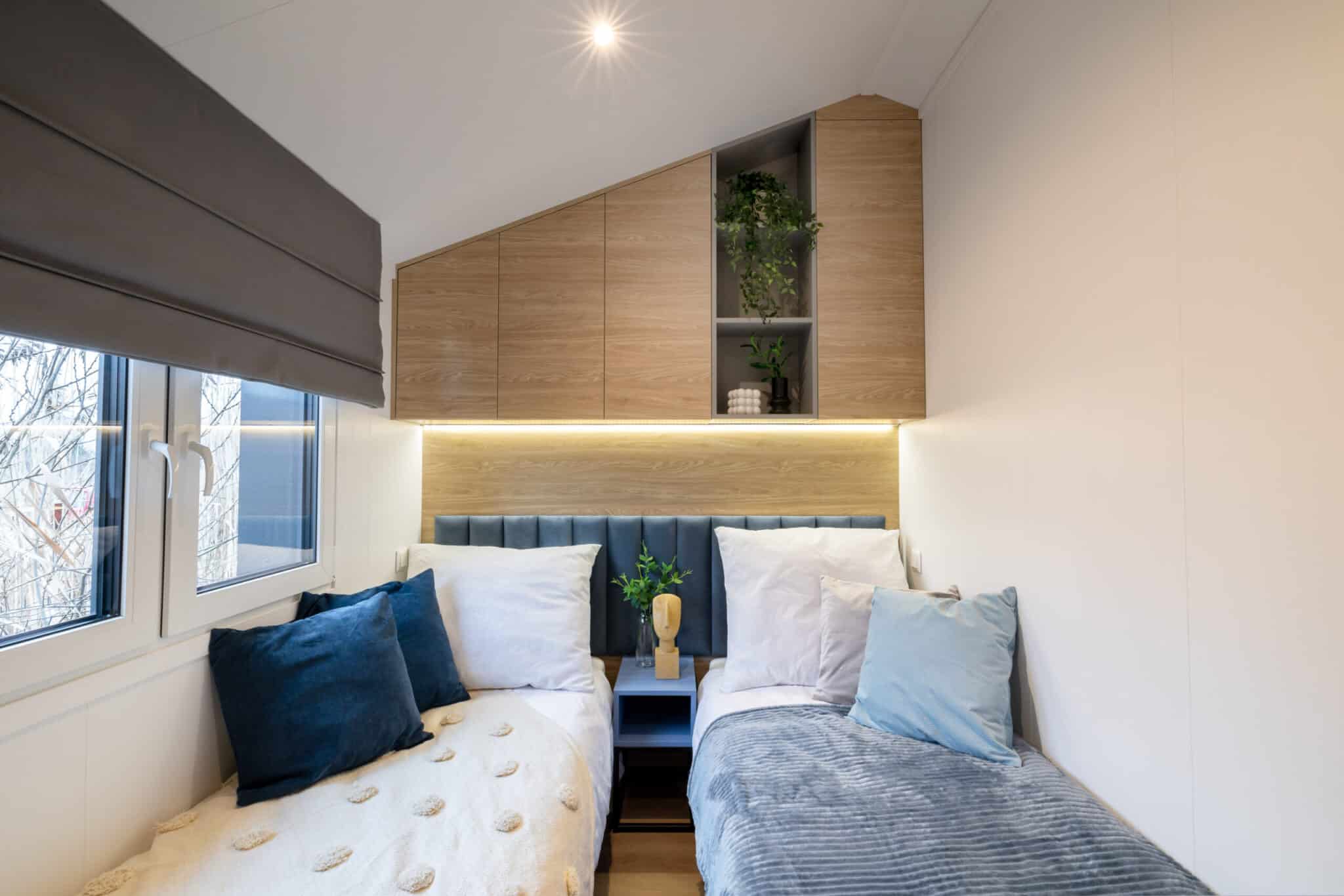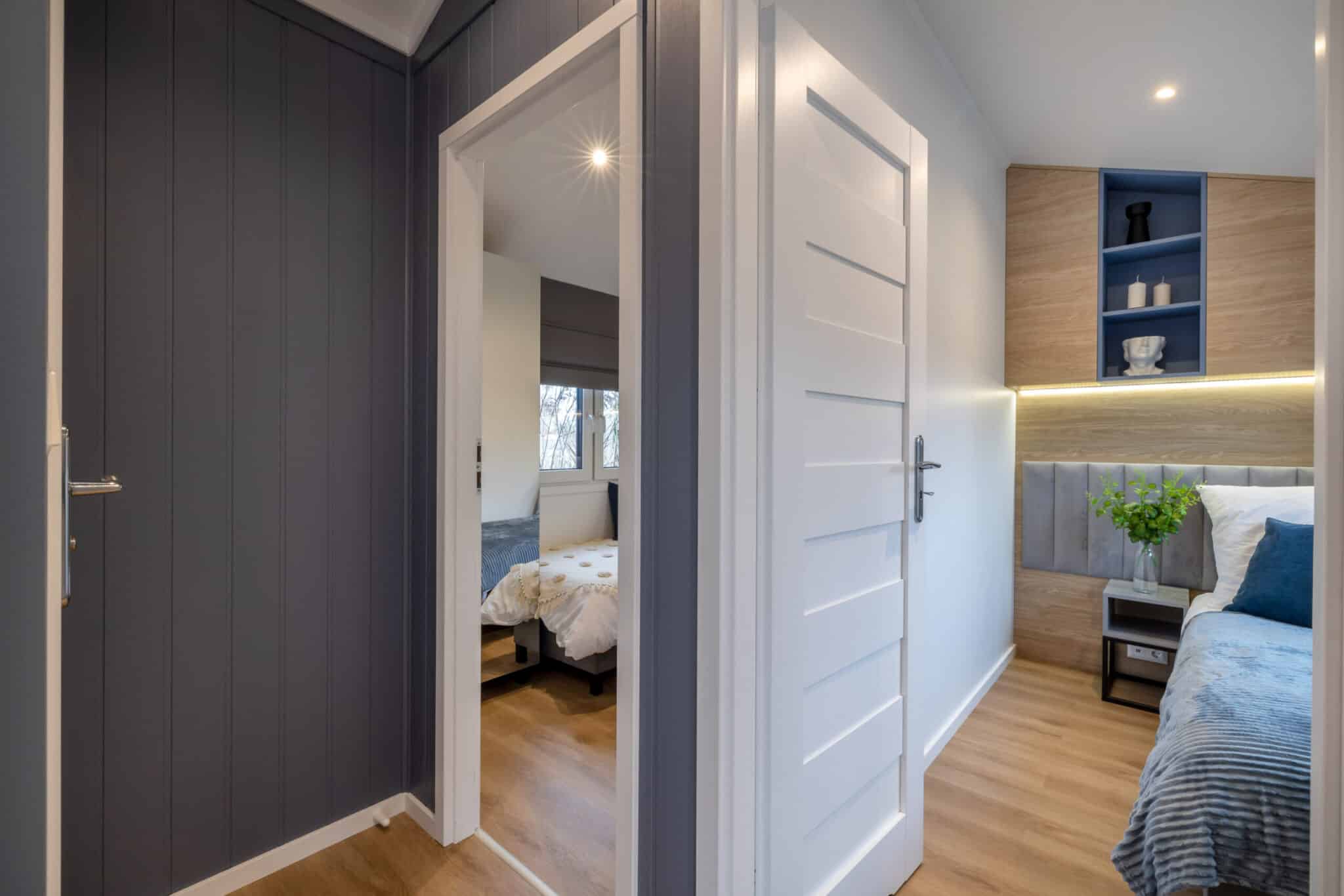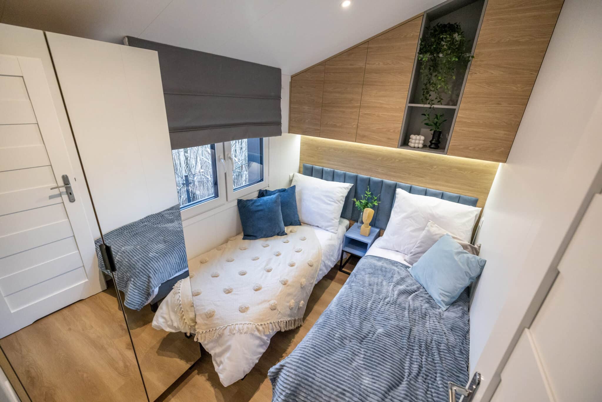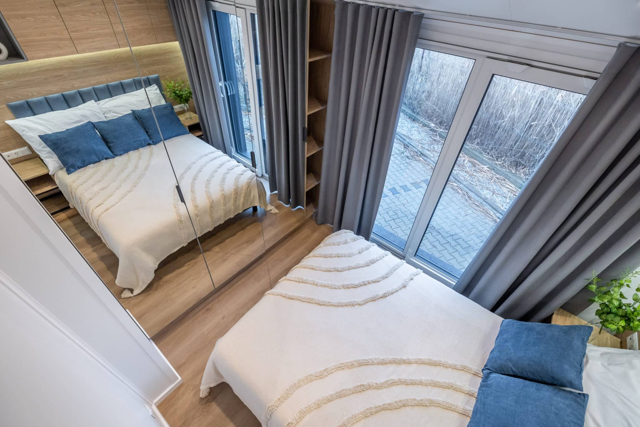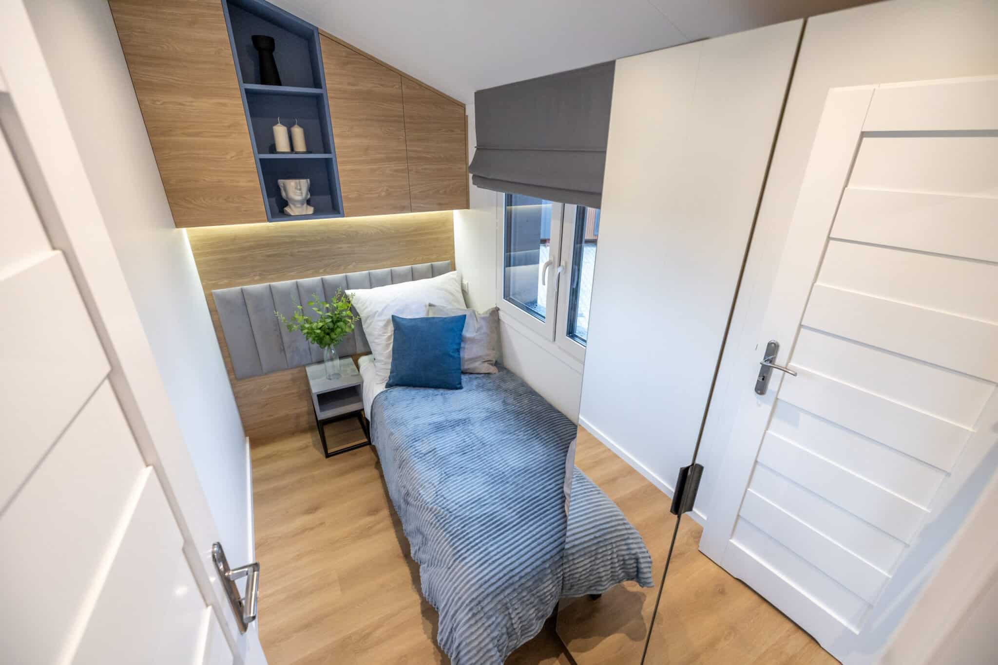 Połączyliśmy pokrycie dachu z elewacją nadając domkowi nowoczesny wygląd. Pozwoliło to nam na rezygnację z orynnowania, ponieważ woda z dachu ścieka po elewacji. Łupek fasadowy nie wymaga konserwacji. Jest łatwy w czyszczeniu i nie trzeba go malować. Elementy dekoracyjne zostały wykonane z panelu FIBO.