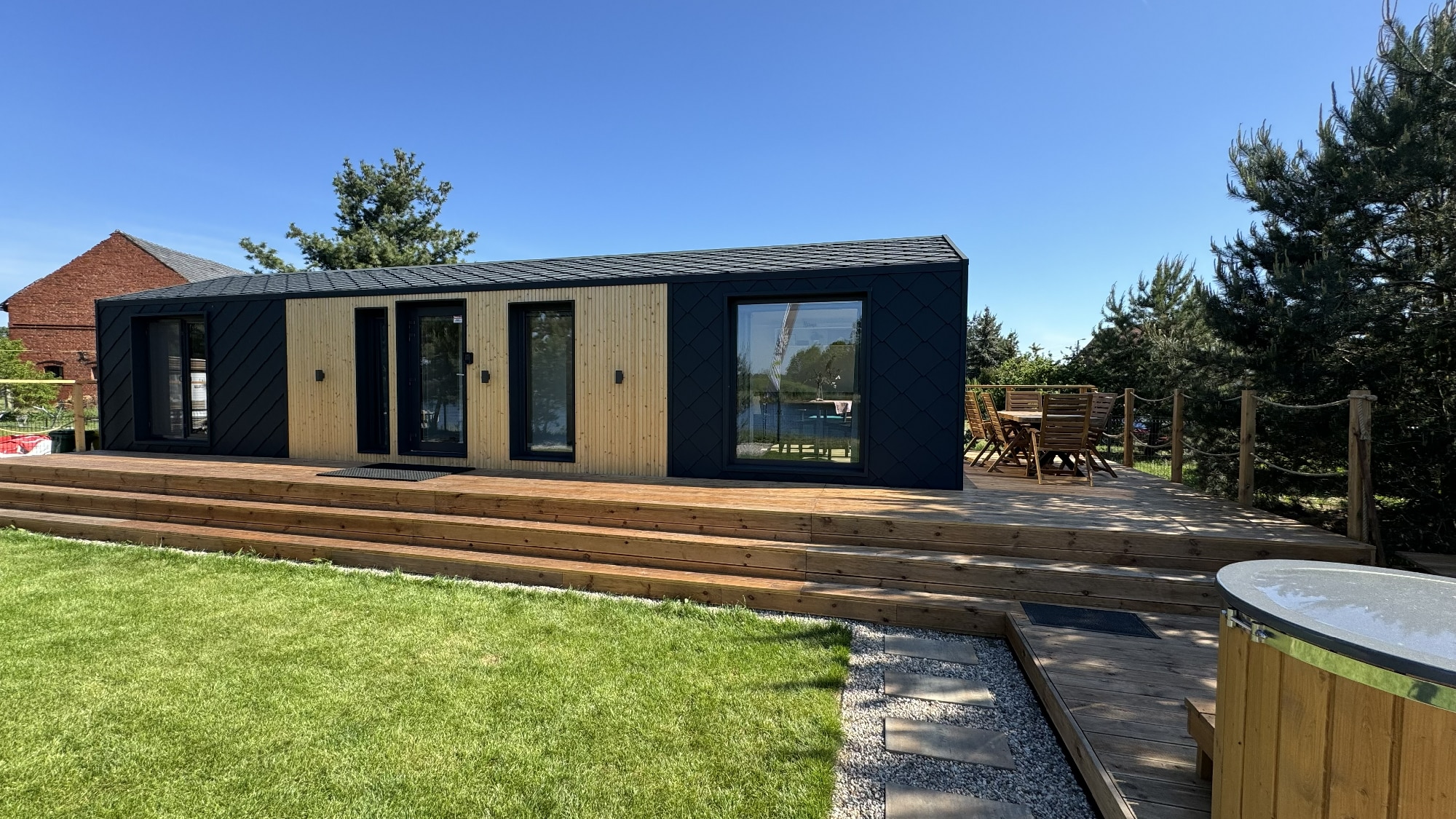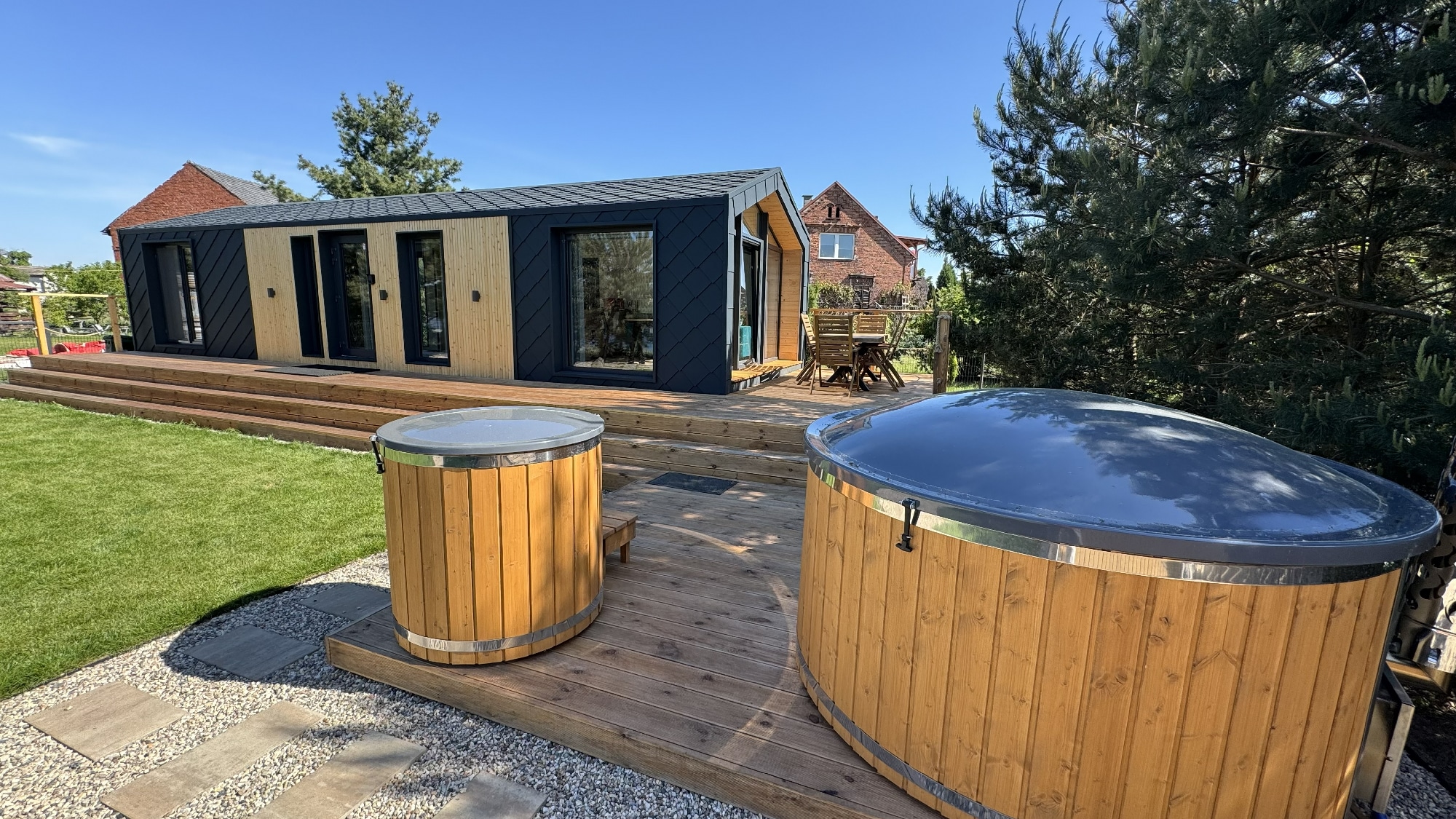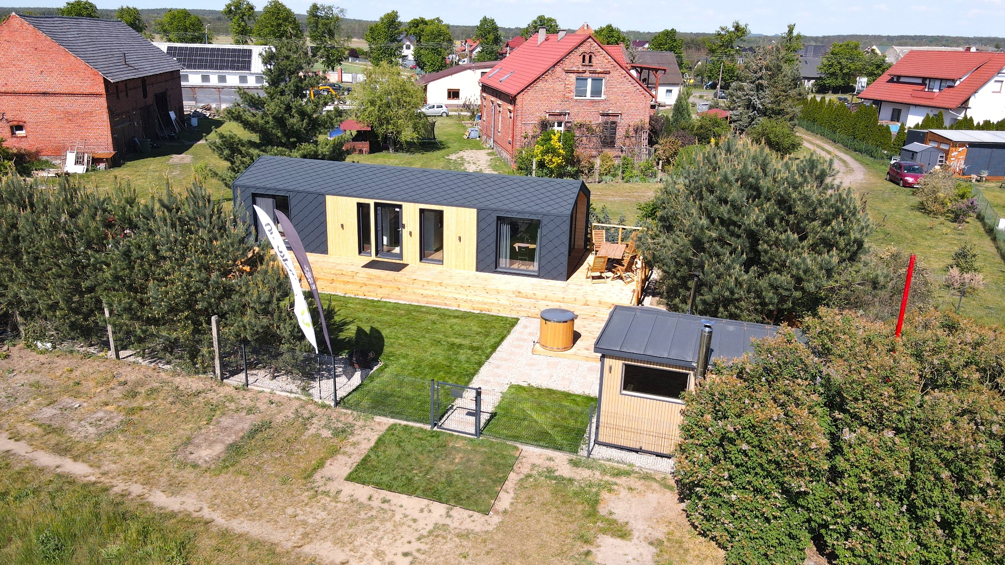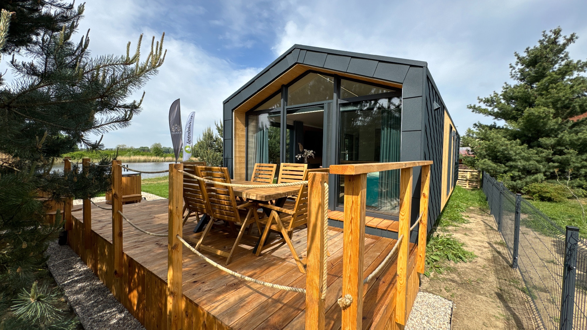 Połączyliśmy pokrycie dachu z elewacją nadając domkowi nowoczesny wygląd. Pozwoliło to nam na rezygnację z orynnowania, ponieważ woda z dachu ścieka po elewacji. Łupek fasadowy nie wymaga konserwacji. Jest łatwy w czyszczeniu i nie trzeba go malować.