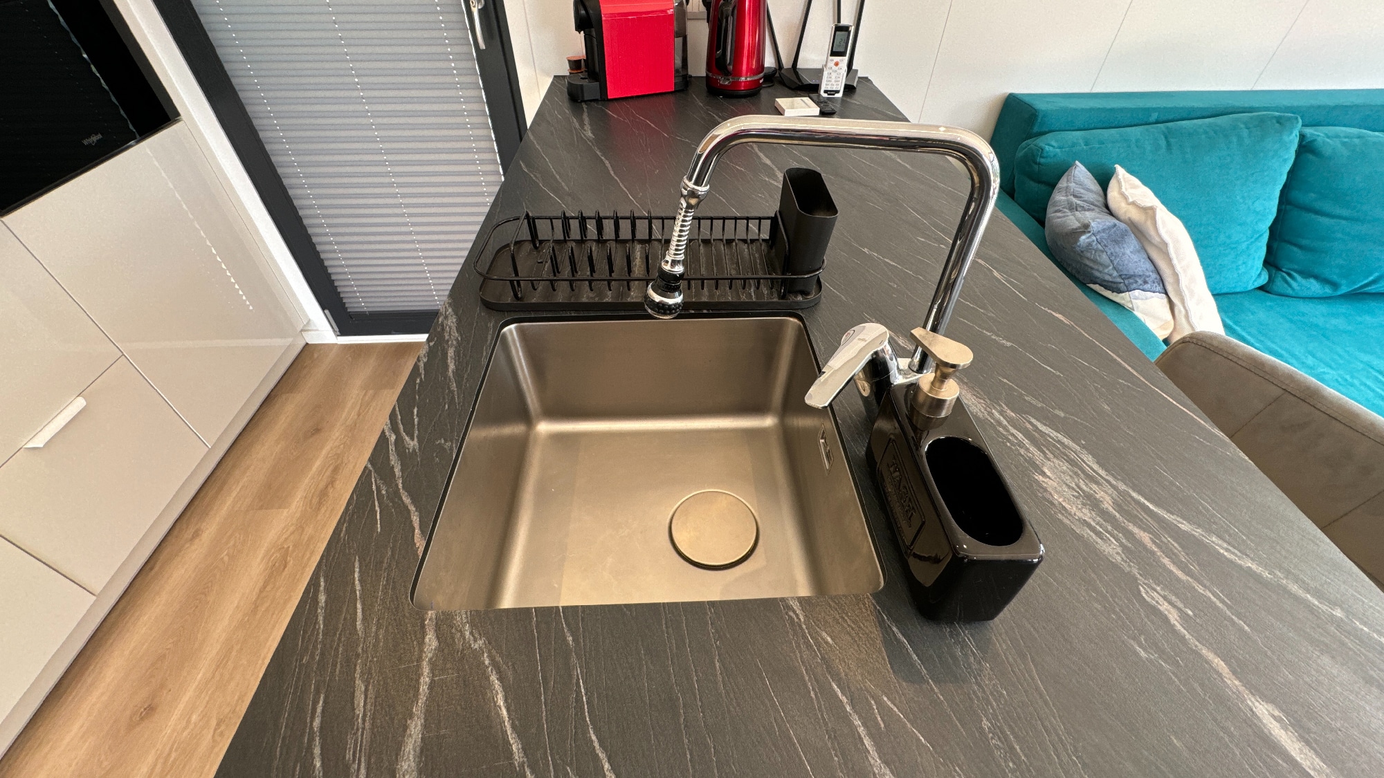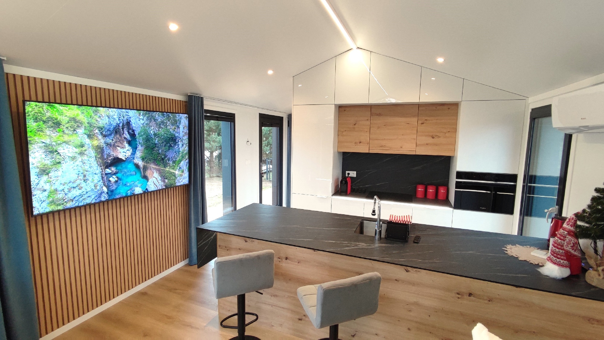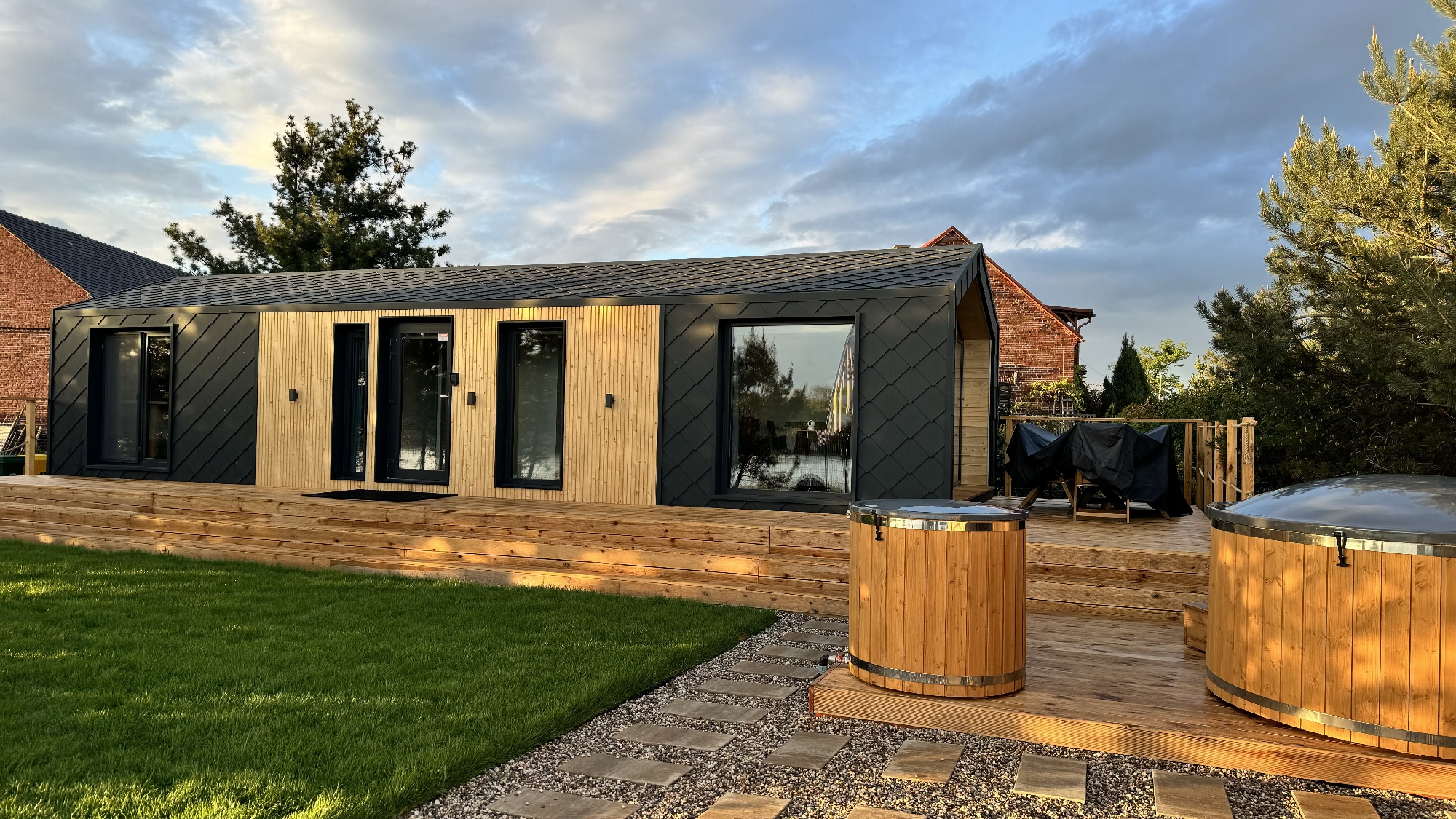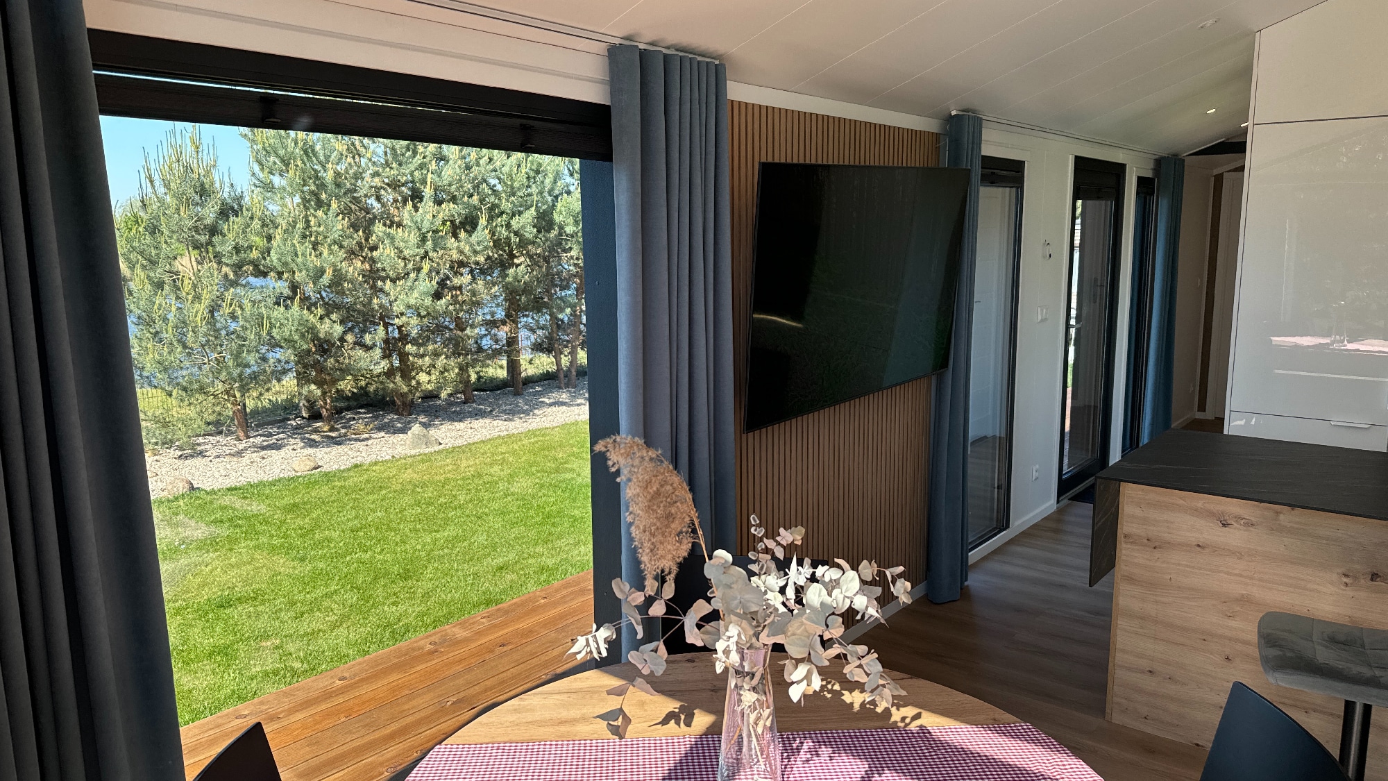 Połączyliśmy pokrycie dachu z elewacją nadając domkowi nowoczesny wygląd. Pozwoliło to nam na rezygnację z orynnowania, ponieważ woda z dachu ścieka po elewacji. Łupek fasadowy nie wymaga konserwacji. Jest łatwy w czyszczeniu i nie trzeba go malować.