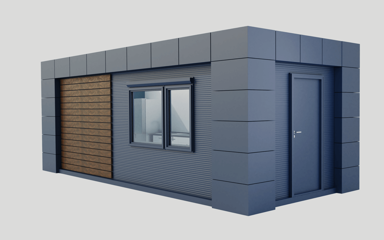 Standardowy model jest wyposażony w jedną parę drzwi o wymiarach 110×210 oraz dwa okna (120×200) wykonane z aluminium. Elektryka jest dyskretnie schowana w ścianach, dach posiada spadek 10cm, a standardowa wysokość kontenera w środku wynosi 240/230cm.