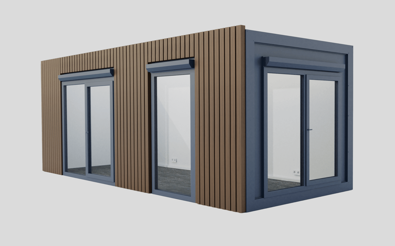 Standardowy model jest wyposażony w jedną parę drzwi o wymiarach 110×210 oraz dwa okna (120×200) wykonane z aluminium. Elektryka jest dyskretnie schowana w ścianach, dach posiada spadek 10cm, a standardowa wysokość kontenera w środku wynosi 240/230cm.