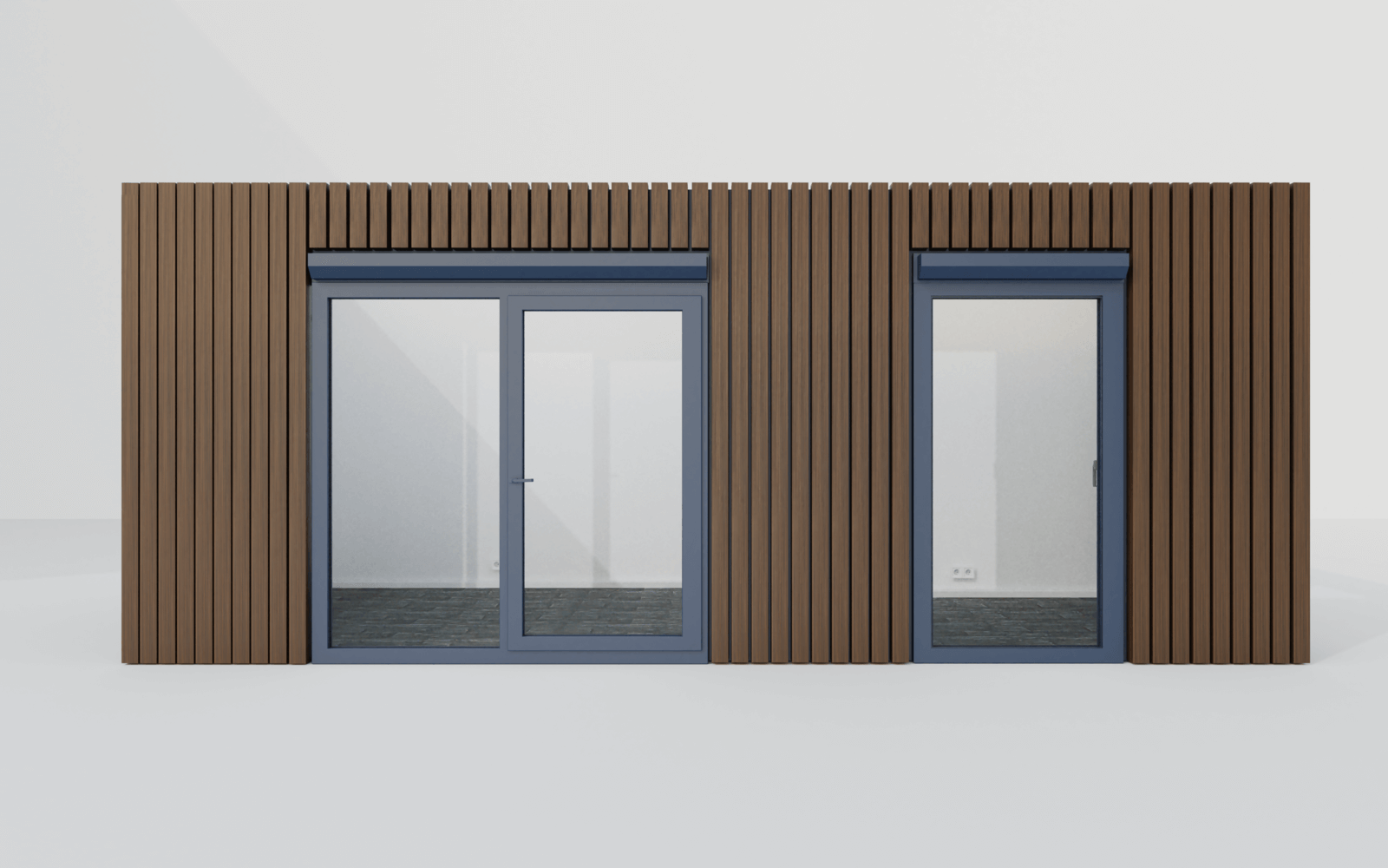 Standardowy model jest wyposażony w jedną parę drzwi o wymiarach 110×210 oraz dwa okna (120×200) wykonane z aluminium. Elektryka jest dyskretnie schowana w ścianach, dach posiada spadek 10cm, a standardowa wysokość kontenera w środku wynosi 240/230cm.