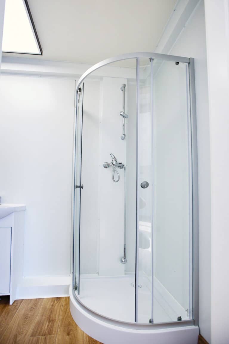 Nasze kontenery sanitarne wyposażone są w pełne udogodnienia – umożliwiają korzystanie z łazienki i mycia w różnych warunkach. Charakteryzują się solidną stalową ramą oraz wytrzymałą konstrukcją z płyty warstwowej. Dla Twojej wygody standardowy model posiada jedną parę drzwi oraz dwa okna wykonane z aluminium. Opcjonalnie można go wyposażyć w łazienkę z prysznicem lub wanną, klimatyzację z funkcją grzania oraz rolety. Na specjalne życzenie klienta, kontener może być także wyposażony w alarm bezpieczeństwa.