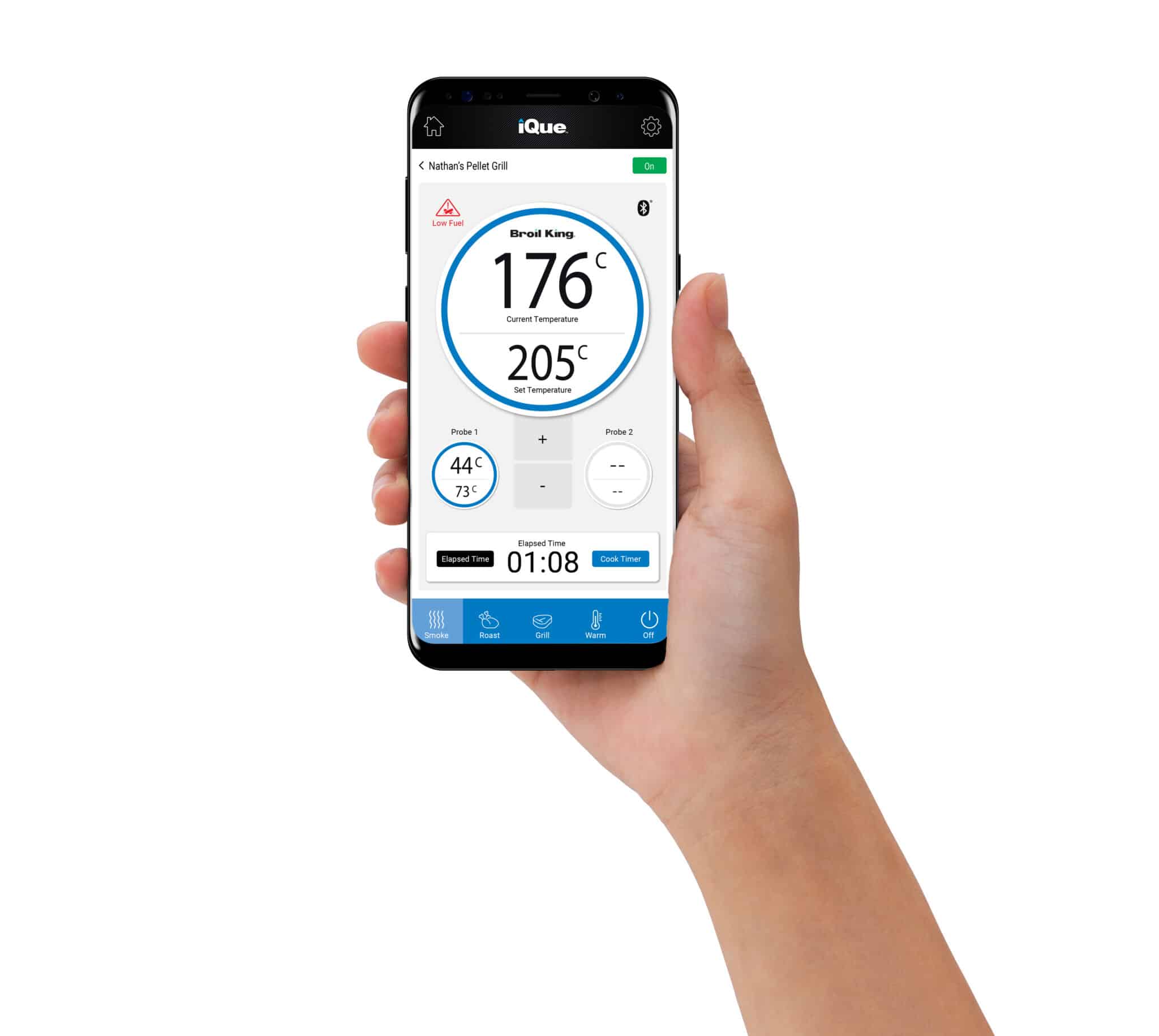 Sterowanie grilla za pomocą aplikacji Broil King iQue.