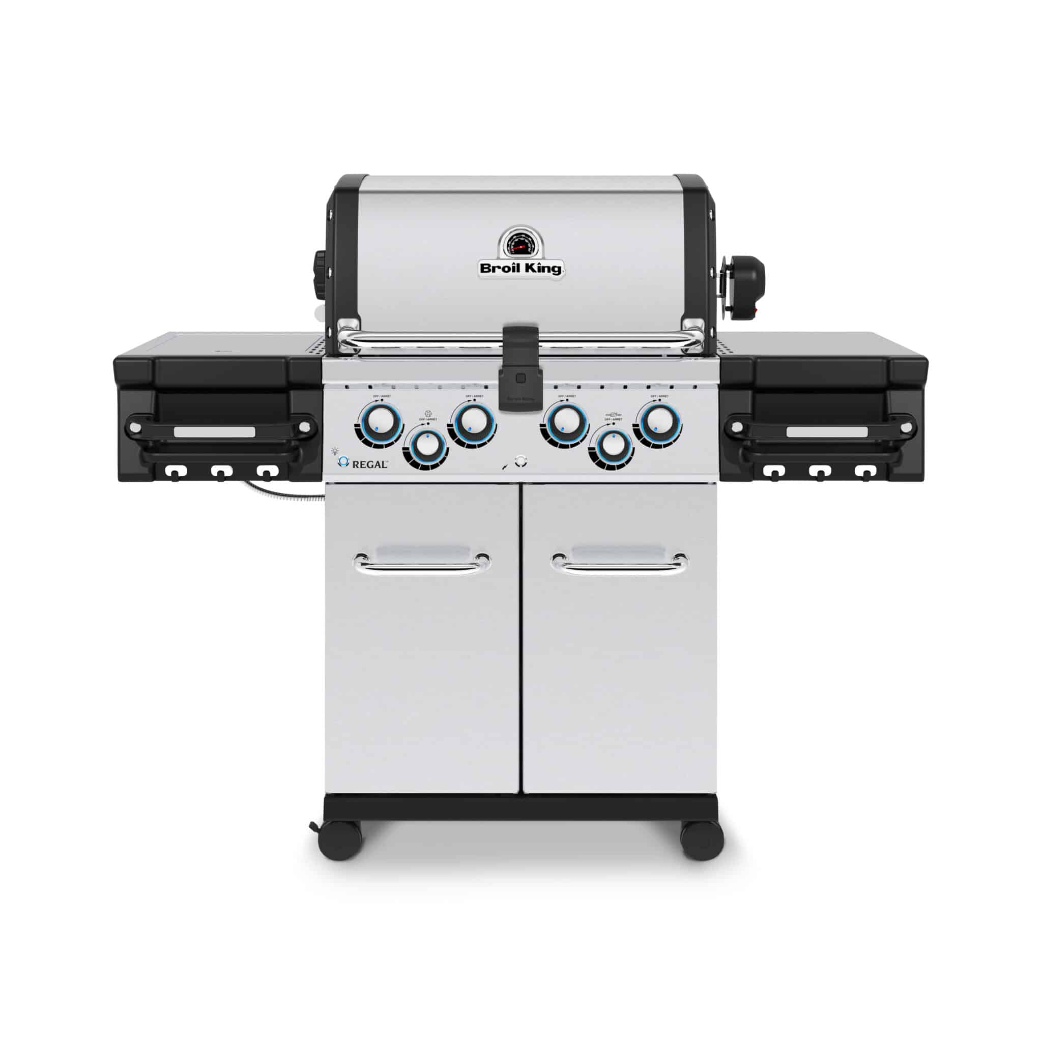 Wózek grilla o sztywnej konstrukcji z szafką na 11 kg butlę z gazem z kołnierzem i szafką na akcesoria.
